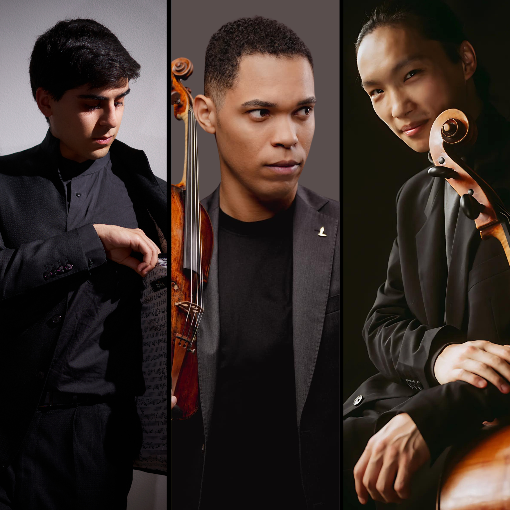 Each member brings a stellar individual career to the stage. Ozel, 2025 Van Cliburn Bronze Medalist and Mozart Concerto Award recipient, is acclaimed for his fluent virtuosity and probing interpretations. Amaral, praised by Yo-Yo Ma for “getting to the heart and soul of musical expression,” has won numerous international competitions and appeared as soloist with the Boston Symphony Orchestra and the Philadelphia Orchestra. Ko, described by Itzhak Perlman as playing “with the beauty of sound and subtlety that we don’t often encounter in a cellist of his age,” shared First Prize in the 2024 Walter W. Naumburg International Competition after winning the 2023 Montreal Symphony Orchestra (OSM) Competition.